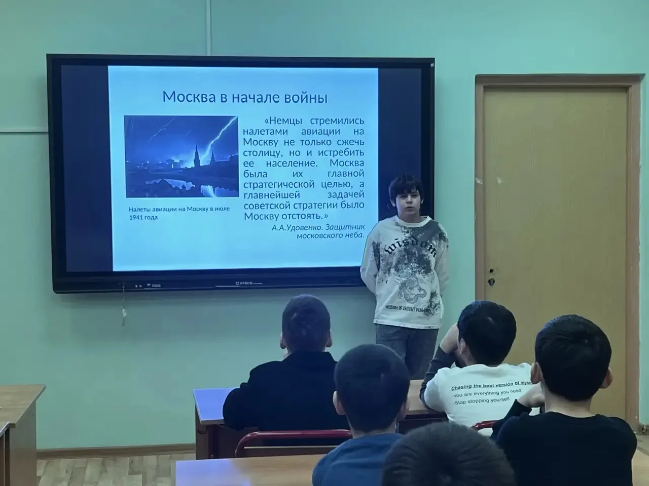 В преддверии Дня защитника Отечества активисты школьного музея «Моё наследие» провели беседу с учащимися о значимости праздника, а также рассказали о героях Битвы за Москву, которые ценой собственной жизни отстояли нашу славную столицу.